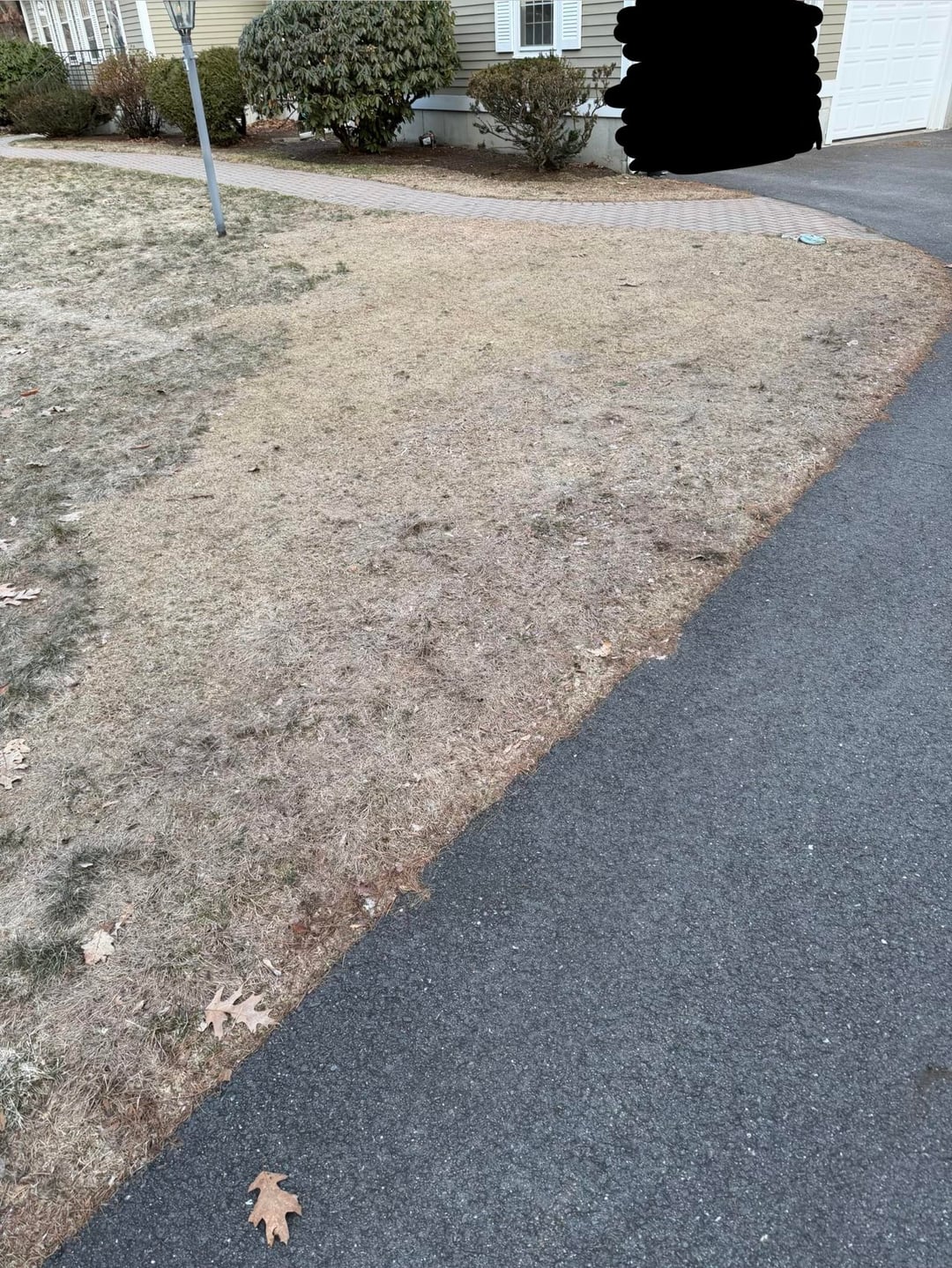 One image is a partial capture of the area during the green months. The second picture is after snow has melted yesterday. I know grass will look bad after winter, but it gives a clear view and you can still see where it starts.