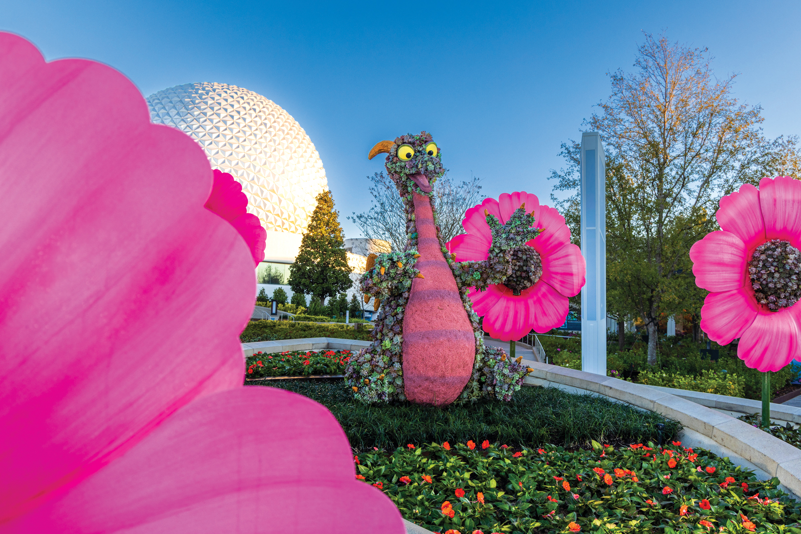 Figment the dragon provides a colorful welcome for visitors to the Epcot International Flower & Garden Festival