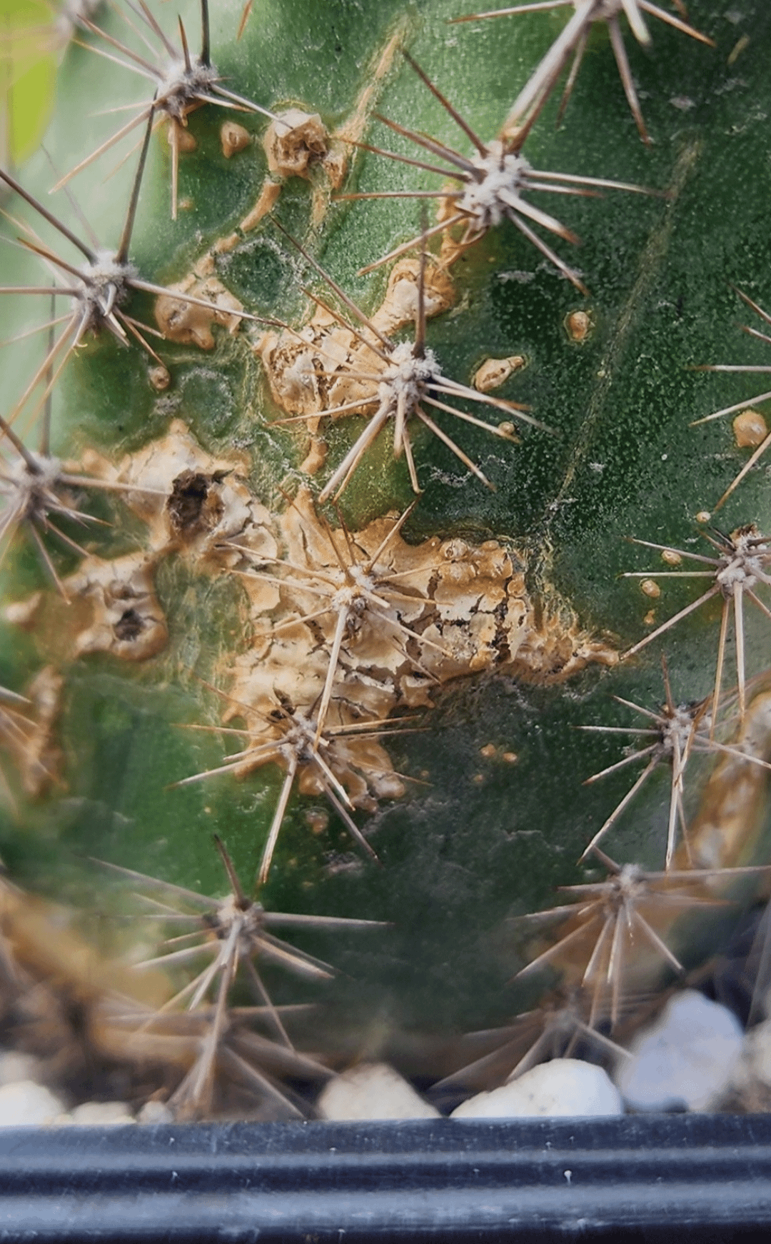 First time cacti owner. Recently got my order, repotted today (after pic ). What is this brownish flakey spot? And if bad, how to treat? by Uder72 cactussan pedro cactus 1 Comment SonoranSporesAZ 1 week ago Normal scaring, nothing to be worried about.