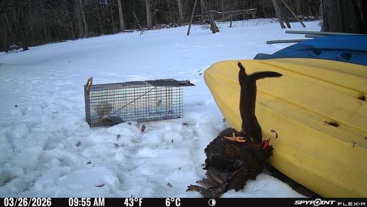 We spent about 20 min watching it go in and out of the trap! It’s already gotten really comfy with the trap, which didn’t shut 🤦♀️ the chicken’s body was preventing the door from shutting, we fixed it, so I’m expecting a mink in the morning. Will report back.