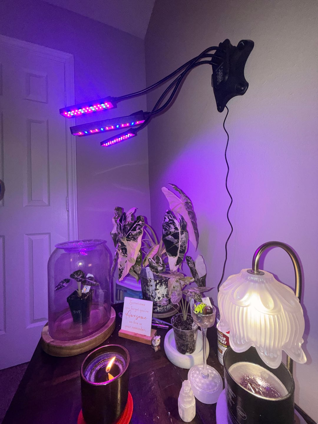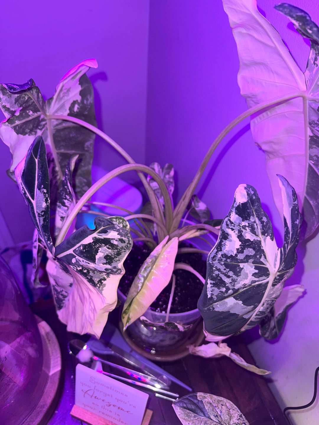 BEHOLD my brand new Variegated Frydek!!! This has been my #1 wishlist plant for two years the prices started finally coming down but every time I went make the plunge they were out of stock (this my pink var. black velvet and mint var. dragon scale)