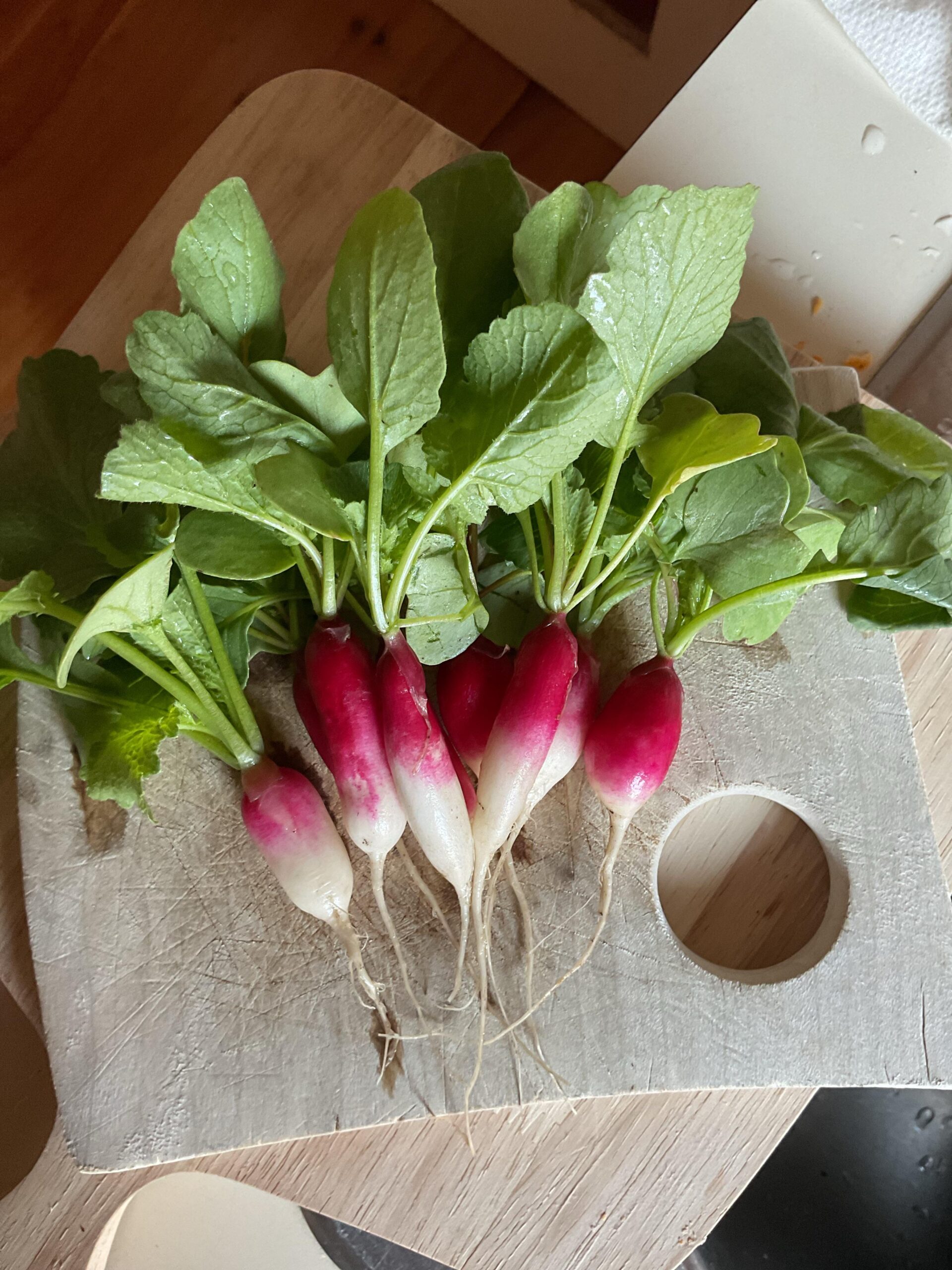 I encourage you to try, especially if you love them as much as I do. Zone 8b French style started from seed 2/22 directly in the ground. Today having radishes and greens salad with eggs and toast and I feel really fancy ! by knucklesmalone gardeningVegetableVegetable Gardening 2 Comments oldaliumfarmer 2 days ago And French breakfast are always so pretty. Nice way to start a season. manyamile 2 days ago You ARE fancy! Beautiful crop. Thanks for sharing and encouraging others.