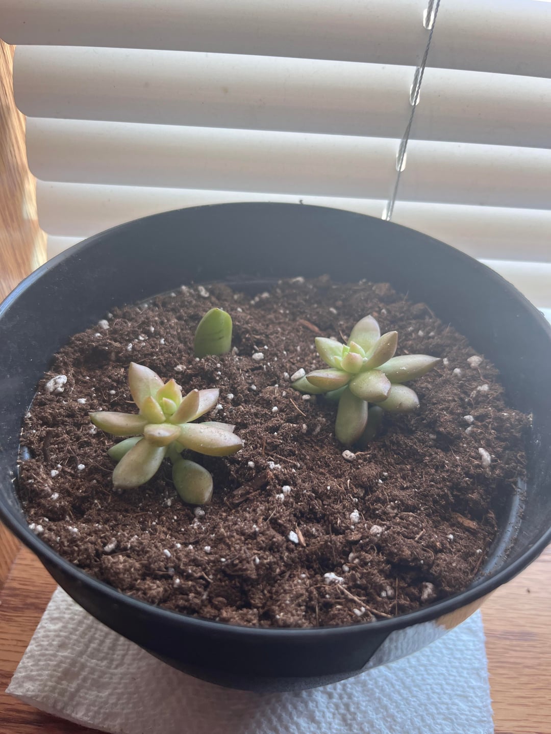 The first picture is my succulent that I replanted because I think it had root rot, the second picture is what I clipped off of my original one and tried to propagate. Do I water it now or wait. I’m using indoor plant soil.
