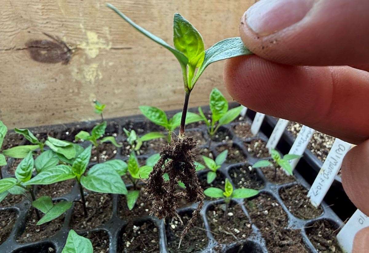 I use a dibber though an old pencil, a lolly stick, or even the handle of a teaspoon works just as well, to gently prize the roots out from the bottom. Hold the seedling by a leaf, ease it out, and pop it into its own pot of fresh, peat-free compost.