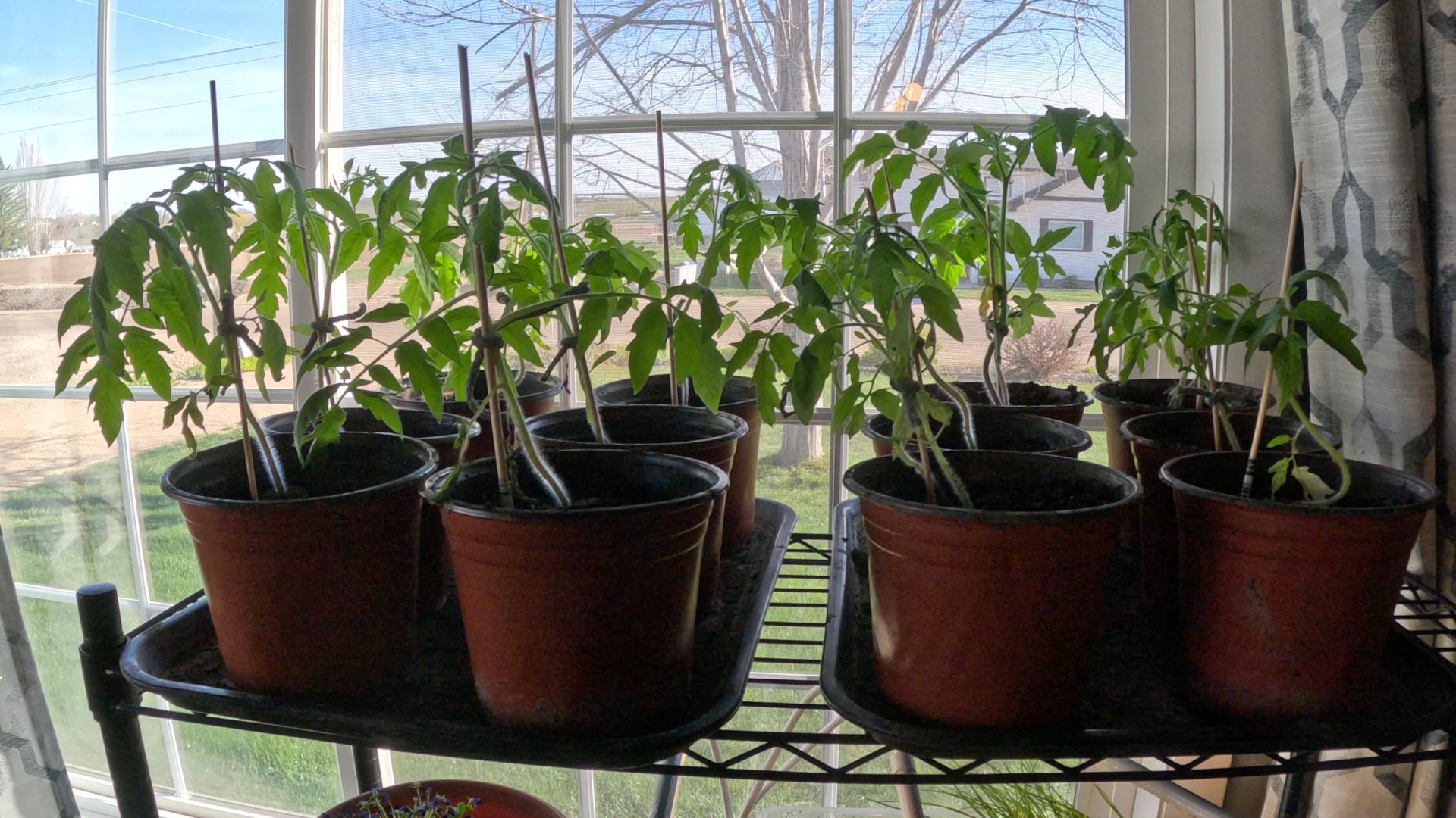 I planted from seed Feb. 1st I repotted at 4 weeks and sending them to the garden with water jackets in 2 weeks. This is my best start of tomatoes in a long time. My past mistakes too leggy. This year I turned off the heat mat right after germination.