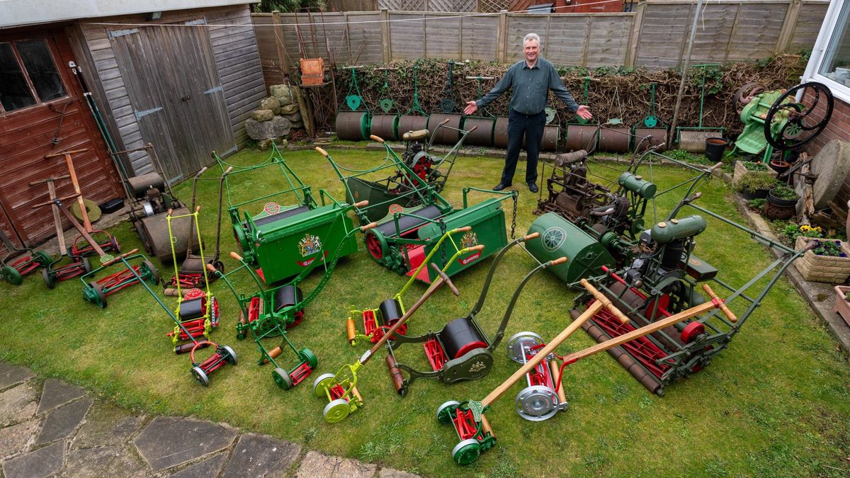 Green-fingered Jonathon Hardwick is ‘spoiled for choice’ when tackling his lawn for the first time this year – having inherited one of Britain’s largest vintage lawnmower collections.