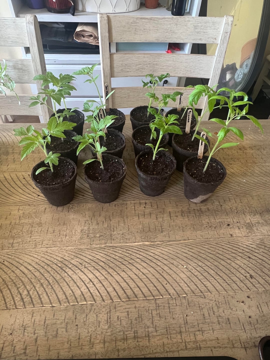 These look like they need to be hardened off and also potted up into deeper containers for all the ones leaning over. The stem may get damaged soon if you don’t pot them up.