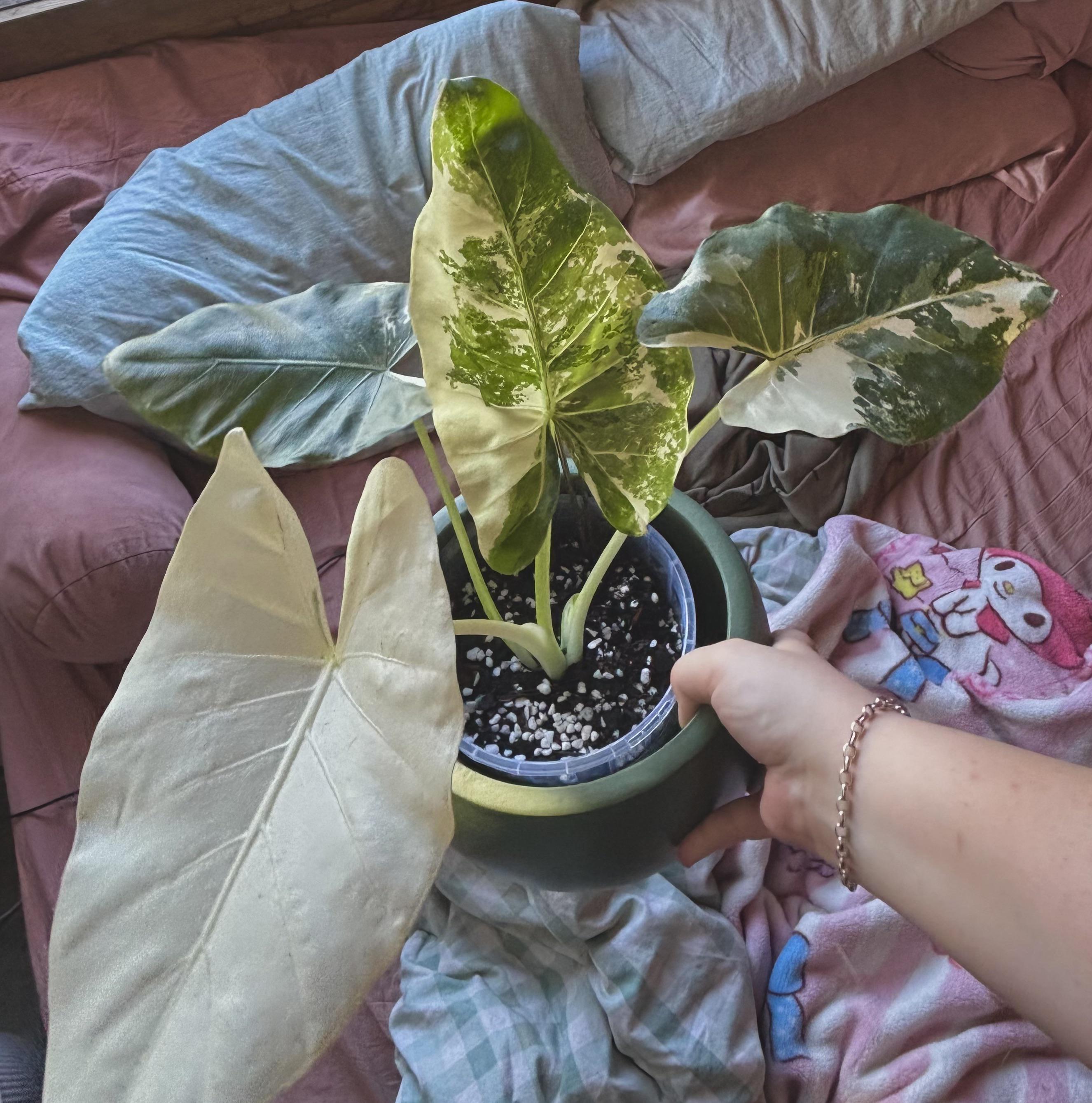 bought this beautiful guy yesterday, i know it’s an alocasia but was wondering what type of variegation? thank you!! by anotheruser2003 plant identificationWhat's this plant 1 Comment xman747x 6 days ago likely an Alocasia macrorrhizos ‘Variegata’ or Alocasia ‘Frydek’ Variegata.
