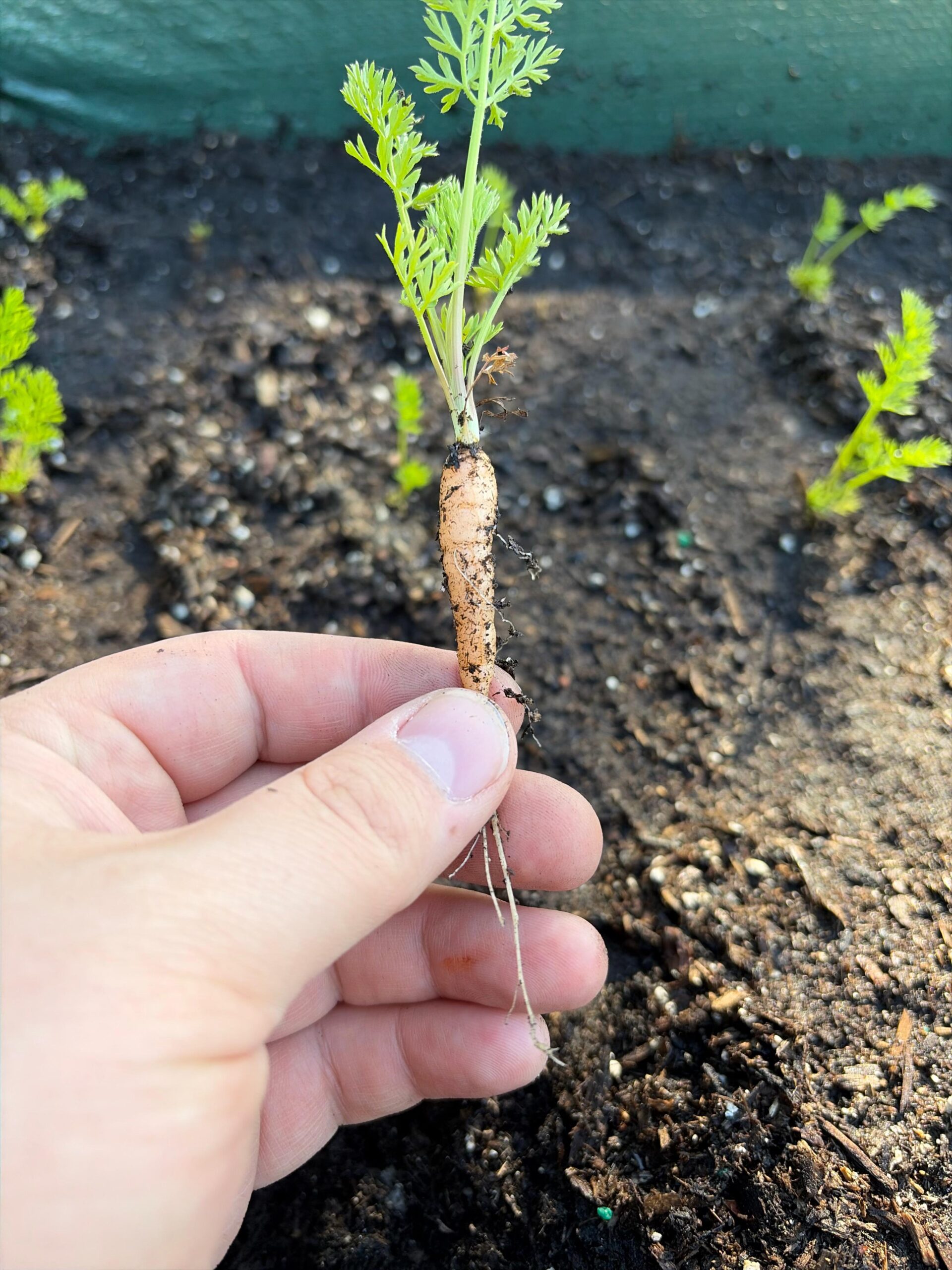 My first carrots were short. Next year’s I tilled way deeper and added a ton of course sand. My theory was it will grow deeper and larger with less struggle and looser soil.