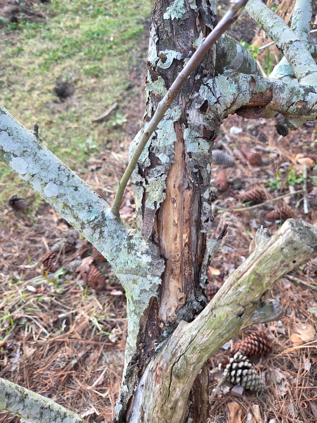 I bought a house last October with two small apple trees in the back. One is very obviously healthier then the other. This weekend I sprayed both with fruit tree pesticide. the one that has been struggling is now shedding its bark like crazy. The healthier one gained some black spots on the trunk, but still looks ok.