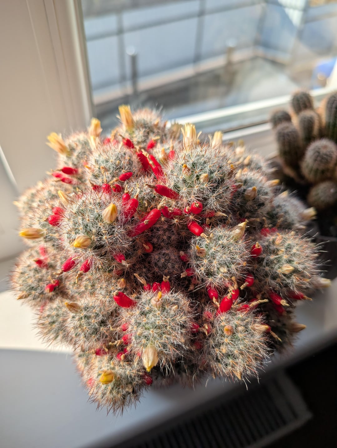 1. I have some Mammillaria like that. They love a good butt chugging. I put the pot in a bucket of water to cover most of the pot and let it soak for 10 minutes. They love it