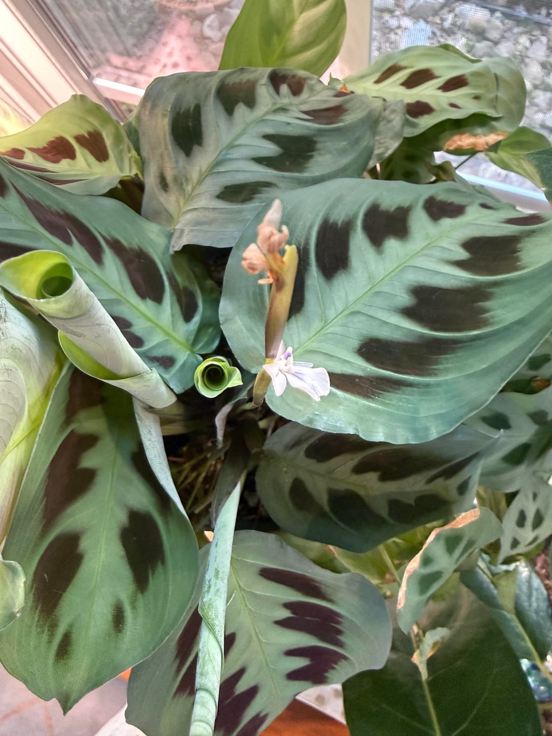 I have a calathea that I’ve had for a couple of years. It’s grown a lot and had small(ish) leaves that were trailing down nicely. About a month ago, it started pushing out leaves that are close to double in size and it’s now blooming! It’s almost like a totally different plant. I haven’t changed its care at all. It sits in a west window in my sunroom and I water it when it’s dry. Thoughts on what’s going on with this thing?? I attached pics so you can see the difference. It’s even slightly different colors.