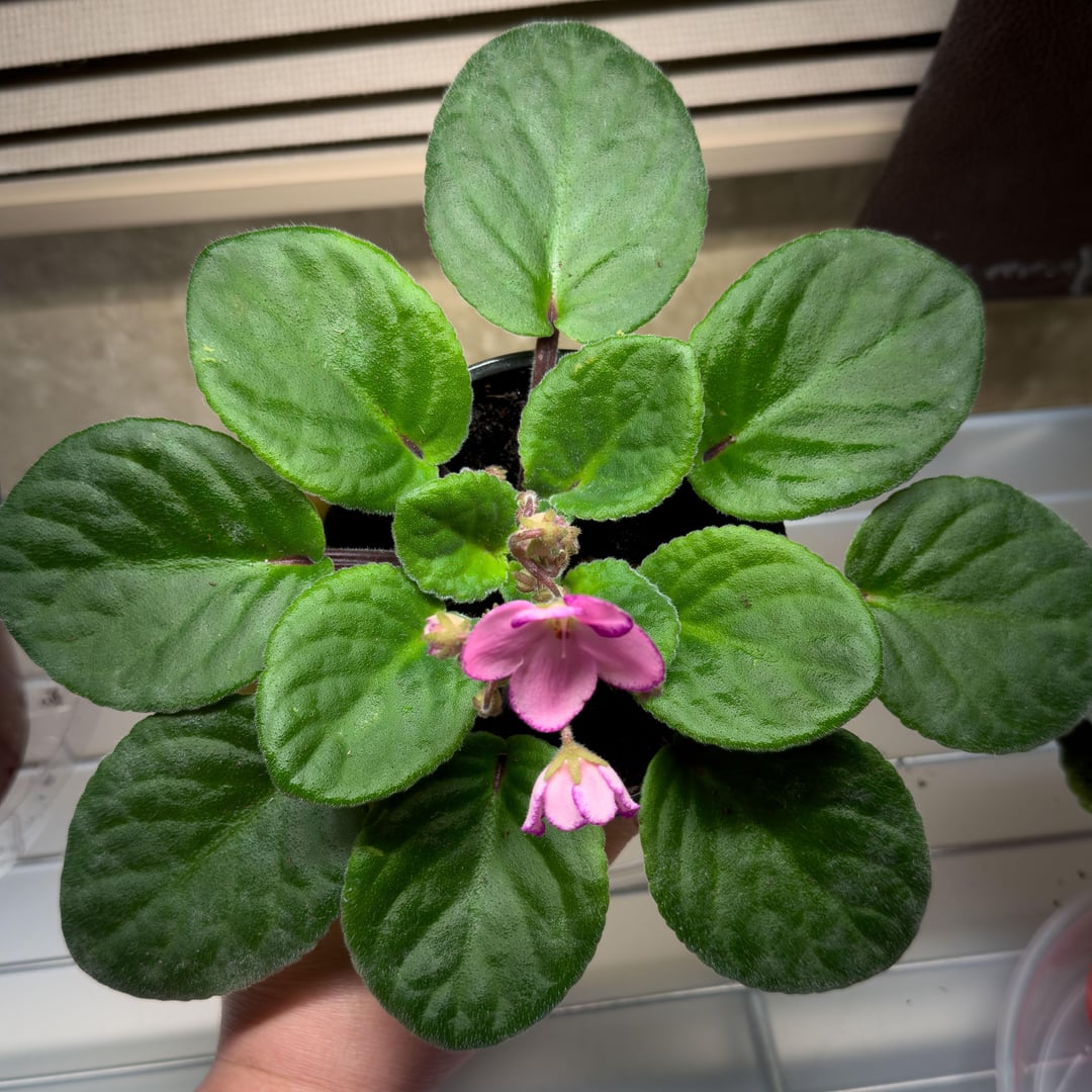 First bloom cycle of a very immature specimen. Lots of room for improvement. Impressive symmetry after one month under my care. Prolific bloomer with upright bloom stalks bearing numerous blossoms per stalk. Blooms true.