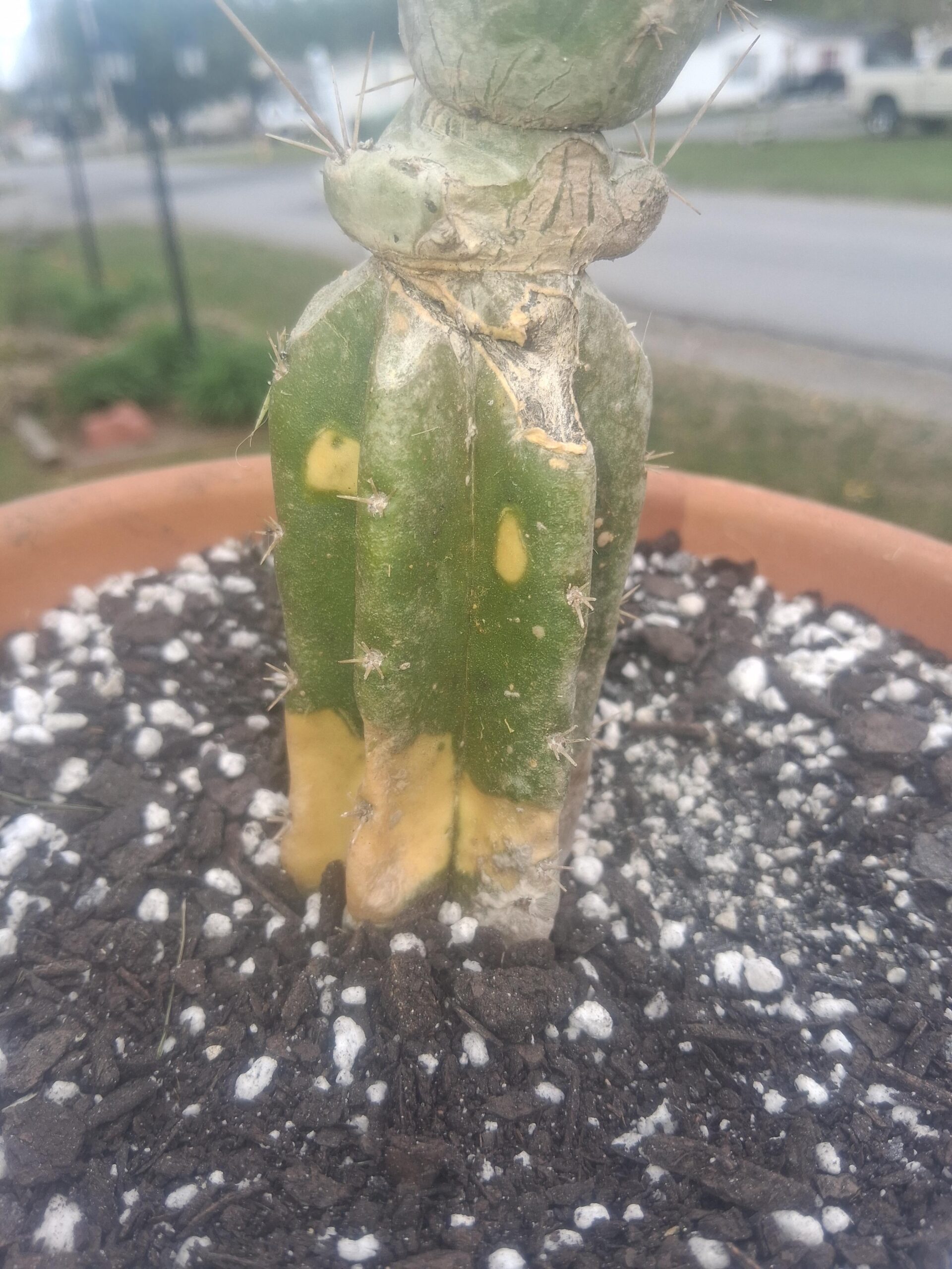 been in a grow tent all winter started yellowing when I moved it outside, probably a deficiency but I don't know what it is. Thanks in advance by External_Bandicoot37 cactussan pedro cactus 1 Comment MomsBasementCactus 21 hours ago The bottom portion or the spots or both?