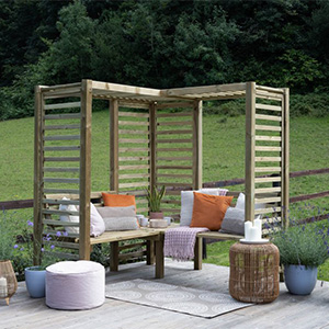 Whether you want a private nook or a more open structure, Forest Garden Arbours come in a variety of styles. A solid roof will give shelter from those unwelcome summer showers, while trellis sides allow you to add a touch of flora to your seating.