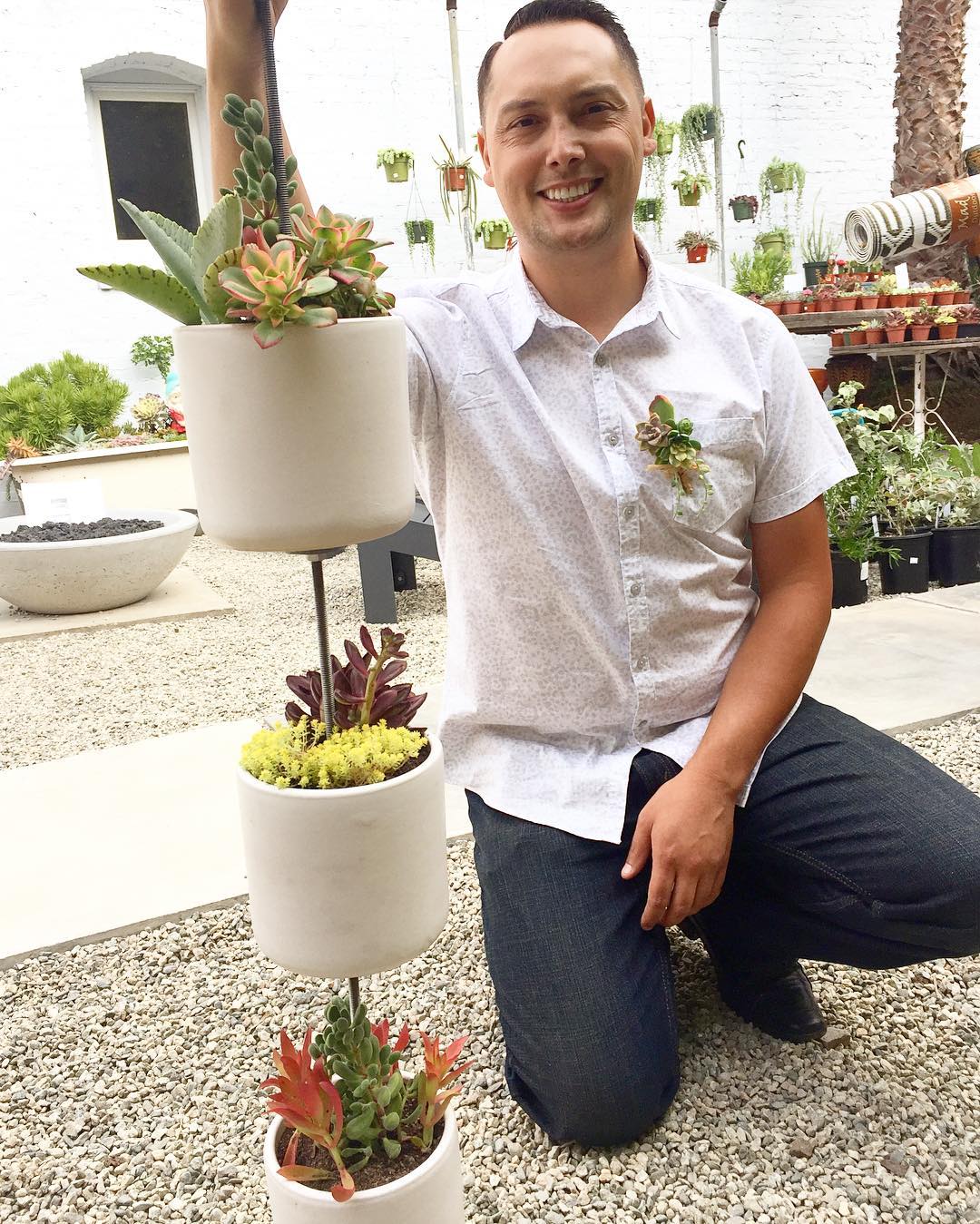 Thanks @warrensgarden for making this epic succulent arrangement to fill the vertical clay pots we demo’d at today’s grand opening of @pottedstore @lazybones_usa in Santa Monica! #gardenparty #putasucculentonit #thatssopotted