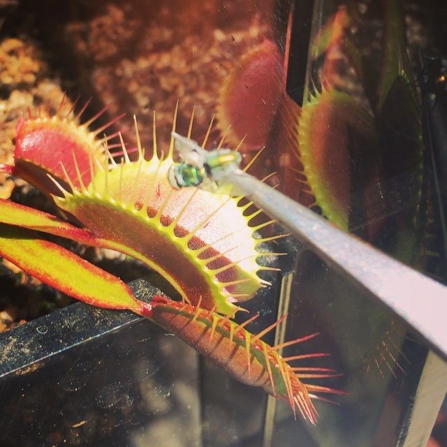 Sorry little guy š Plants gotta eat! š± You shouldn’t have followed me into the house! Check out the hunt on Snapchat (š»thehorticult) and some sinister feeding tips! #venusflytrap #greendragonhybrid #dionaeamuscipula #carnivorousplants #flytraps