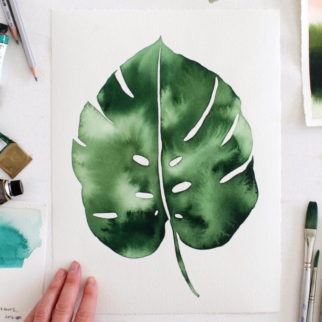 I’ll never stop loving you Monstera deliciosa 🤟🏻 New technique on an old friend using Terre Verte Green @danielsmithartistsmaterials mix with Arches watercolor paper, French cotton is the bessst.