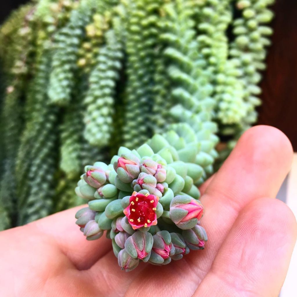 Be sure to check the tips of your burro’s tail this time of year🔎🌸 These are blooms you don’t want to miss! #burrostail #sedummorganianum #succulove #succulents #thehorticultgarden