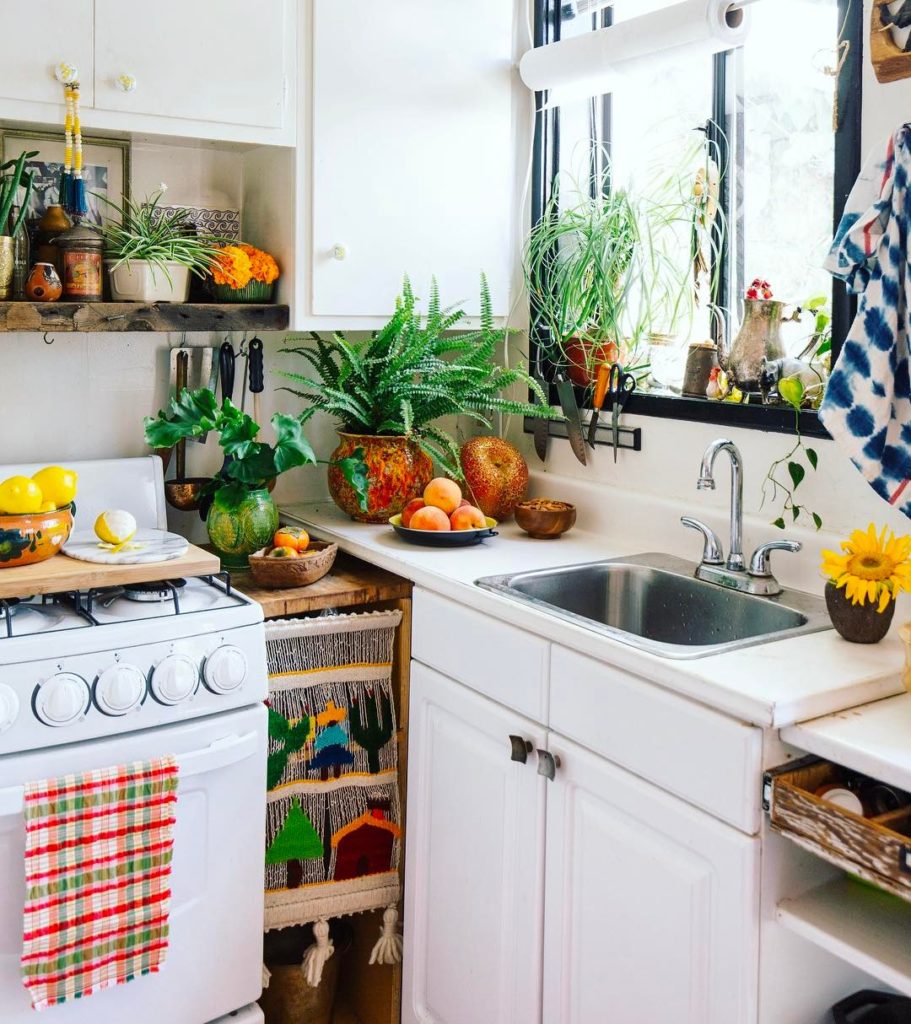 Outtake from our soon-to-be-released book #thenewbohohandbook from the home of the all around rock star @lauren_kolodny of @righttribe. We are obsessed with her whole vibe–and this tiny kitchen gives us all the feels ✨🌿✨🌿 #jungalowstyle