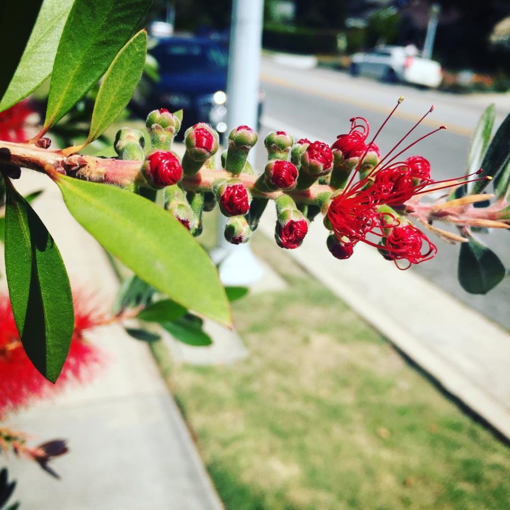 Red bottlebrush season…activate! ⚡️💃🏾⚡️we love the buds’ spiky vibes on the #Callistemon trees and hedges blooming all over SoCal. #bloomalert #springtime #la