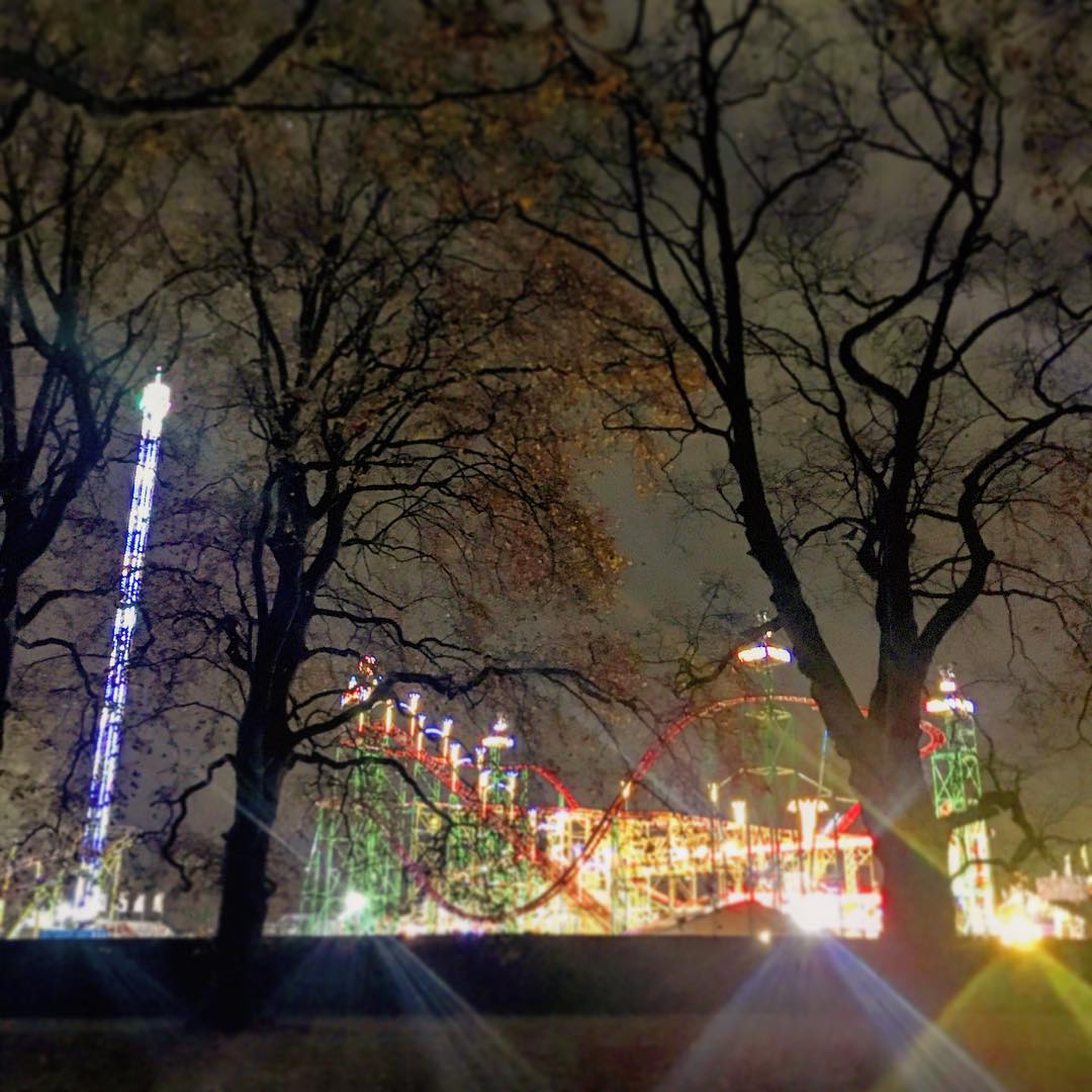 Cycling through Hyde Park tonight Winter Wonderland looks amazing but this is as close as I want to get. #lights #fairground #trees #hydepark #winterwonderland #cycling #london #looksgreatfromhere #silluette #autumn