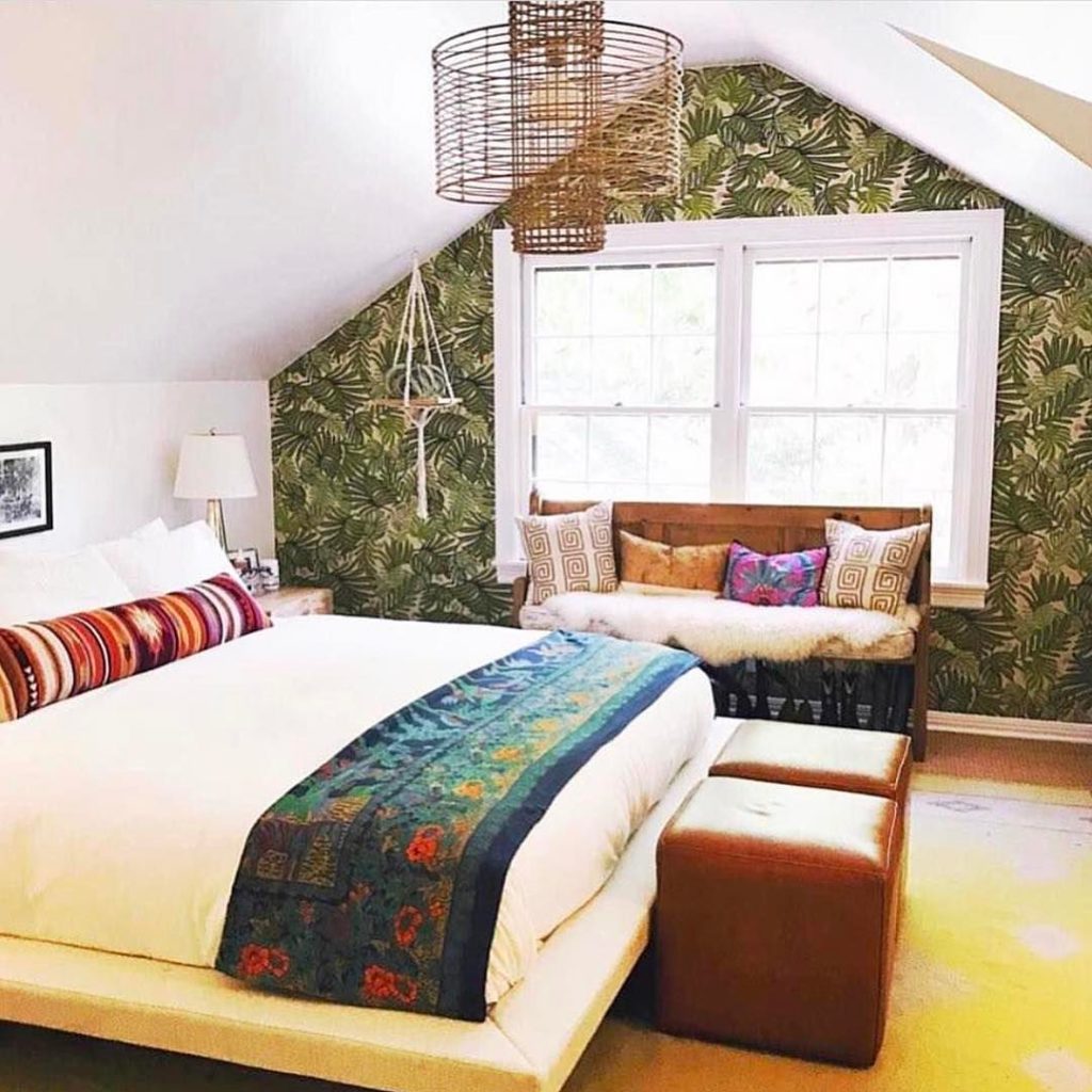 Such a beautiful attic from @theboohemian featuring our #ajawallpaper. 😍✨🌿❤️ #justinablakeneyhome #jungalowstyle #thatjungalowlife @hyggeandwest #justinaxhyggeandwest