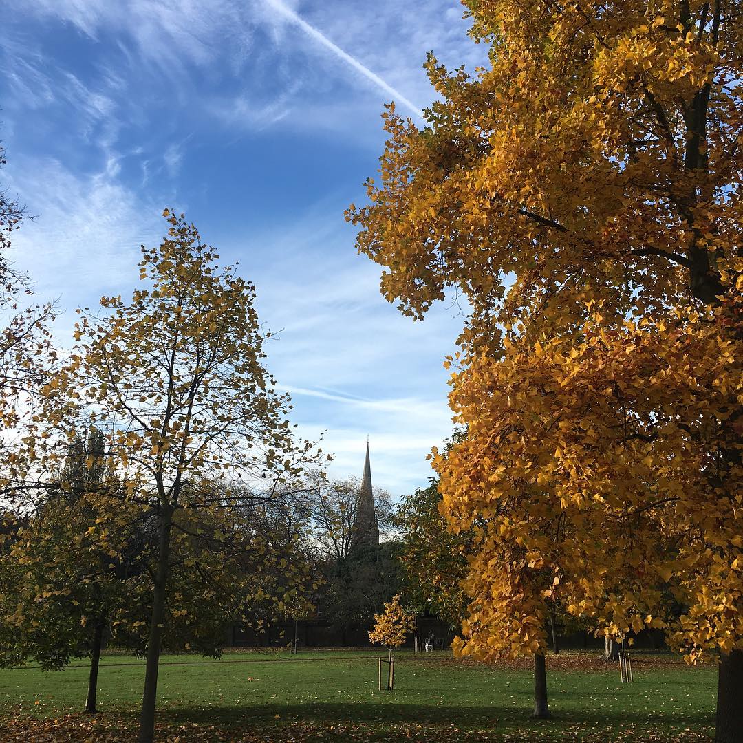 The view to the spire of St Mary’s Abbots Church from Kensington Gardens #Landscape_lovers #architecturelovers #elegant #outdoors #gardening #nature #instagardenlovers #instagarden #instagood #autumn #autumncolours #park #london #blueskies #sunshine #church #spire #nofilter #tree #trees