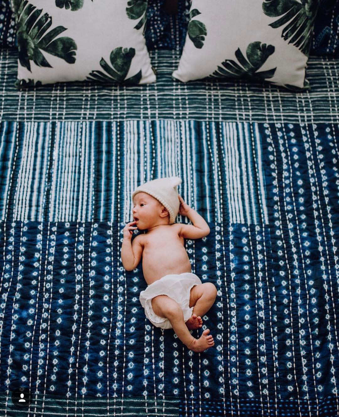 Our Avisa bedding has never looked sweeter!!! @maddywitha_y congrats on this beautiful angel and thanks for sharing your heart warming #jungalowstyle!! #thatjungalowlife #justinaxmakerscollective #justinablakeneyhome