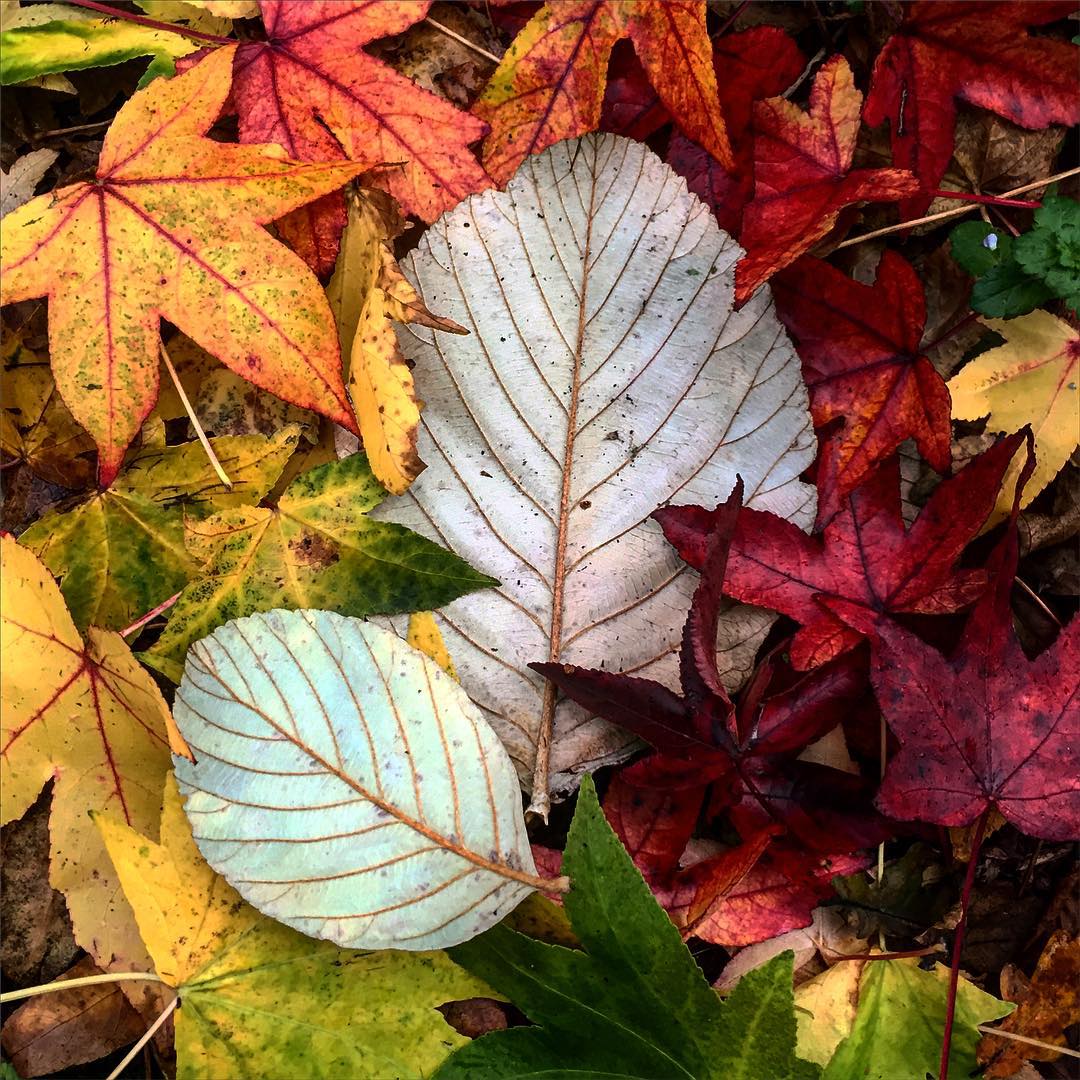 #autumn’s hanging on. #Fabulous #contrast between the #fallen #leaves of Sorbus hedlundii & #Liquidambar styraciflua. #mother #nature as #artist in #residence @exburygardens