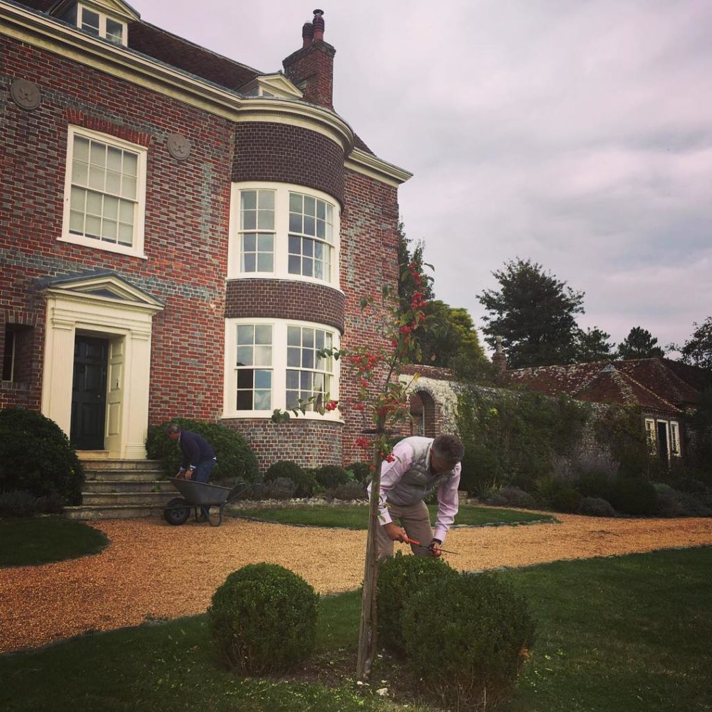 Singing for my supper by trimming some box balls at the Dipperays, East Dean, East Sussex. #trimming #box #boxwood #garden #gardening #georgian #georgianarchitecture #autumn