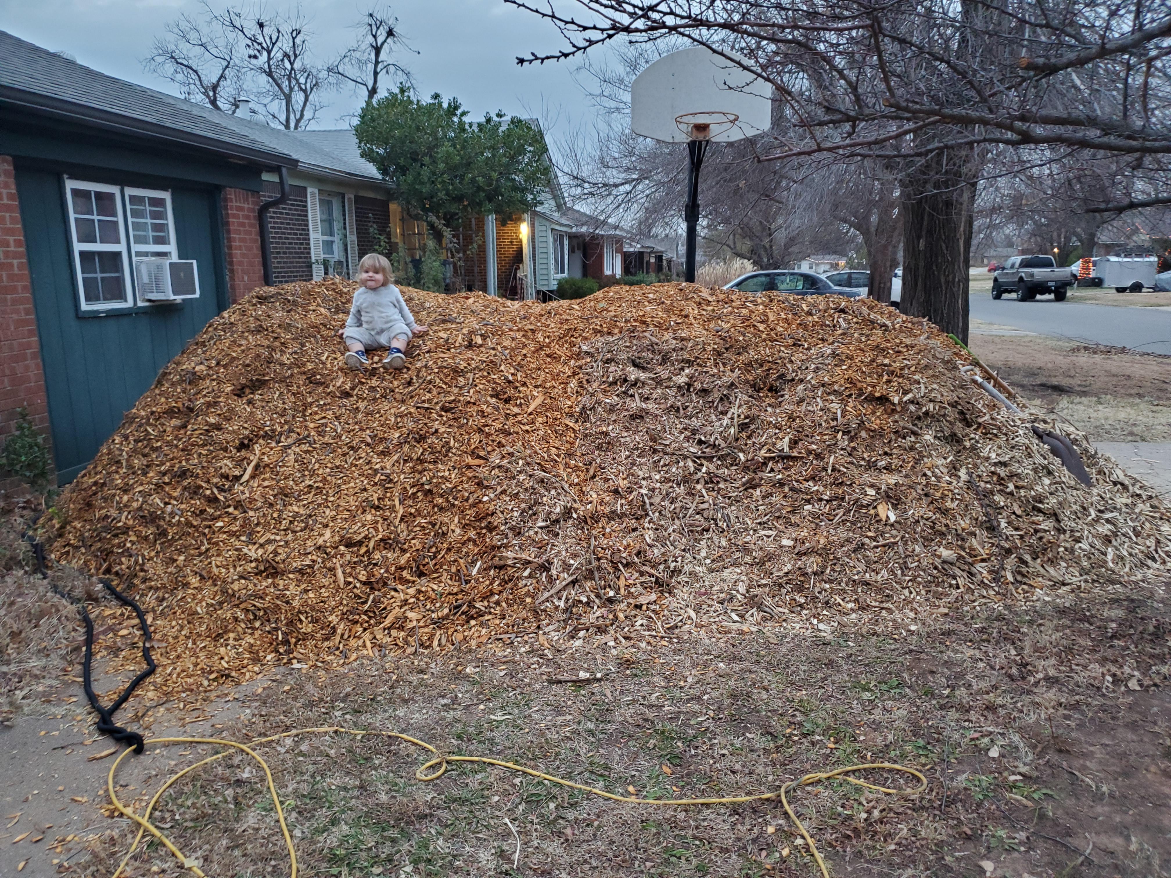 We got our chipdrop, just in time for winter! (Toddler for scale) gardening funredditreddit gardening Comments are closed.
