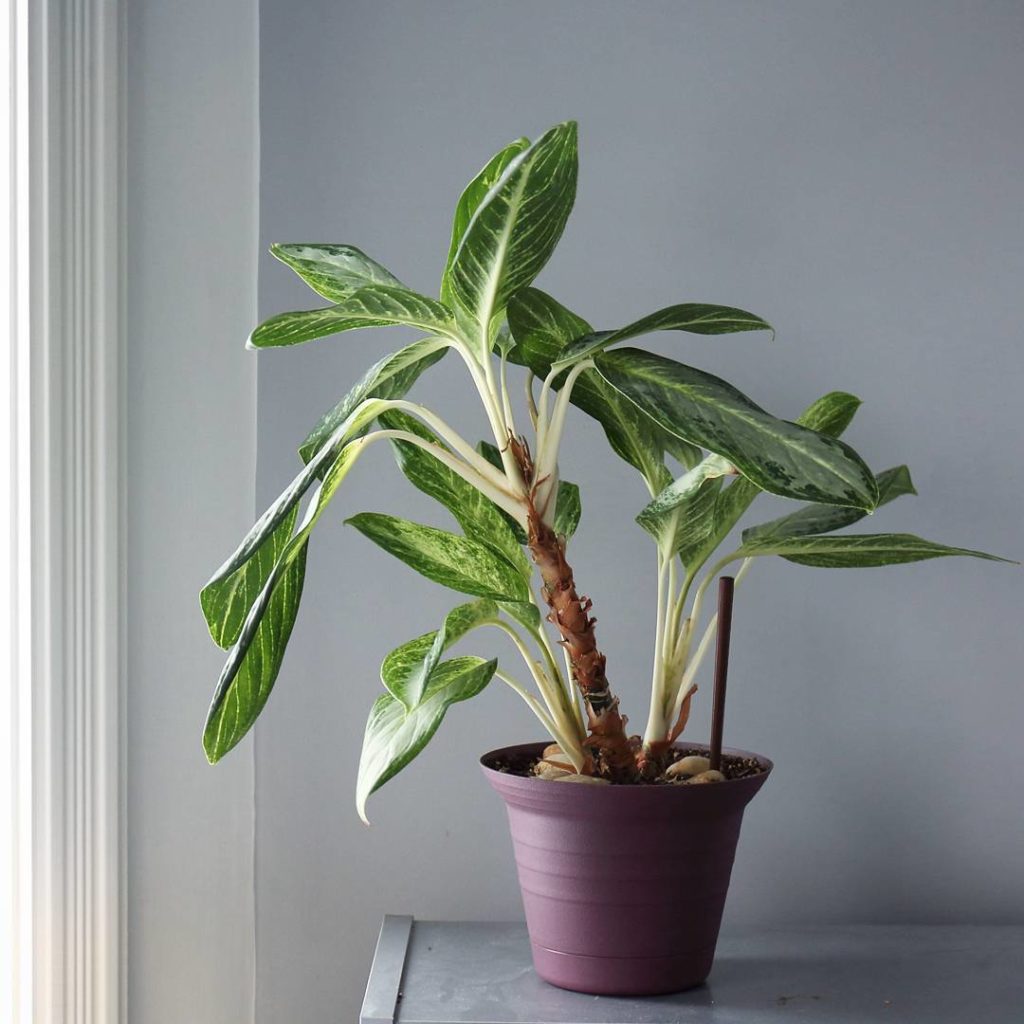 My very first house plant, a house warming gift: this Aglaonema (Chinese evergreen) was given to me as an offshoot from my friend’s larger plant 6 years ago. It went through some rough times as I gained experience with house plants. Now it is time to make one (or two) more house warming gifts from this. Many of my elder plants have earned a dedicated aerator (a fancy chopstick). I suggested getting a nicer pot but she’s comfortable in her original pot from the dollar store. I did one repotting a few years ago.