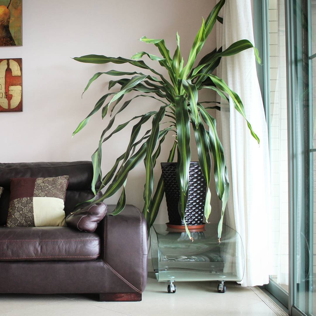 And here’s my aunt’s Dracaena fragrans growing as a single stem instead of a pruned trunk – if a plant stem is healthy when you prune it, there will be multiple new shoots emerging from the axillary buds (dormant buds, awakened by termination of the original growing tip)