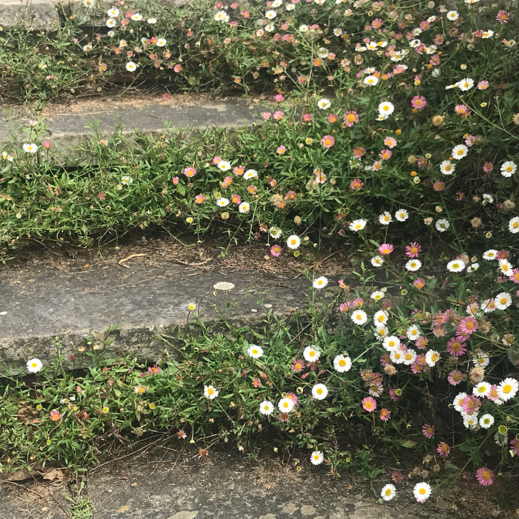 Doing what it does best, colonising places that look inhospitable to plant growth #erigeronkarvinskianus – give it a wall or step or even the merest weakness in a bit of grout and, it’s off #nature #gardendesign #summer #daisy #loveplants