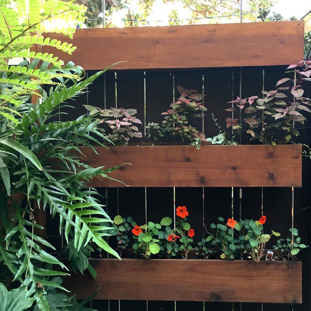 Our nasturtium in their new home. 🌿🏠It’s a vertical annual garden. Top planter is California wildflower mix (just now sprouting) and middle planter is polka dot plant (Hypoestes phyllostachya). #nasturtium #tropaeolummajus #polkadotplant #hypoestesphyllostachya #verticalgarden #thehorticultgarden