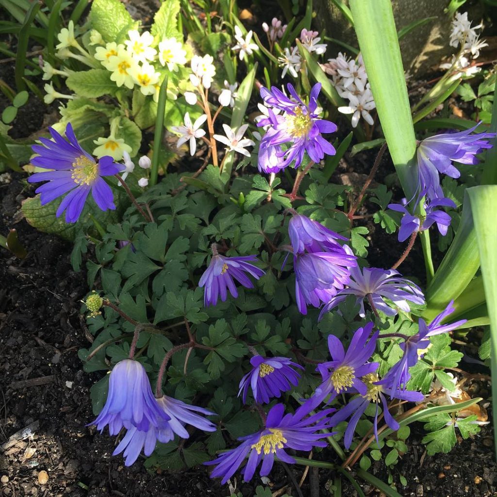 Beautiful Anemone Blanda Blue, Primula vulgaris and Scilla tubergeniana in the spring sunshine at Kensington Palace. #bulbs #flowers #anemone #primrose #nofilter #kensingtonpalace