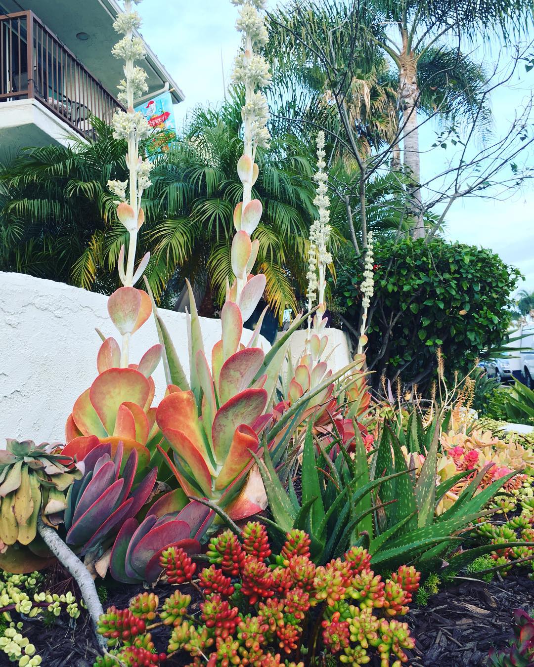 Are your paddle plants shooting to the sky? We love this planting strip arrangement…#paddleplant #kalanchoe #kalanchoethyrsiflora #streetflora #succulents #succulove #thehorticult