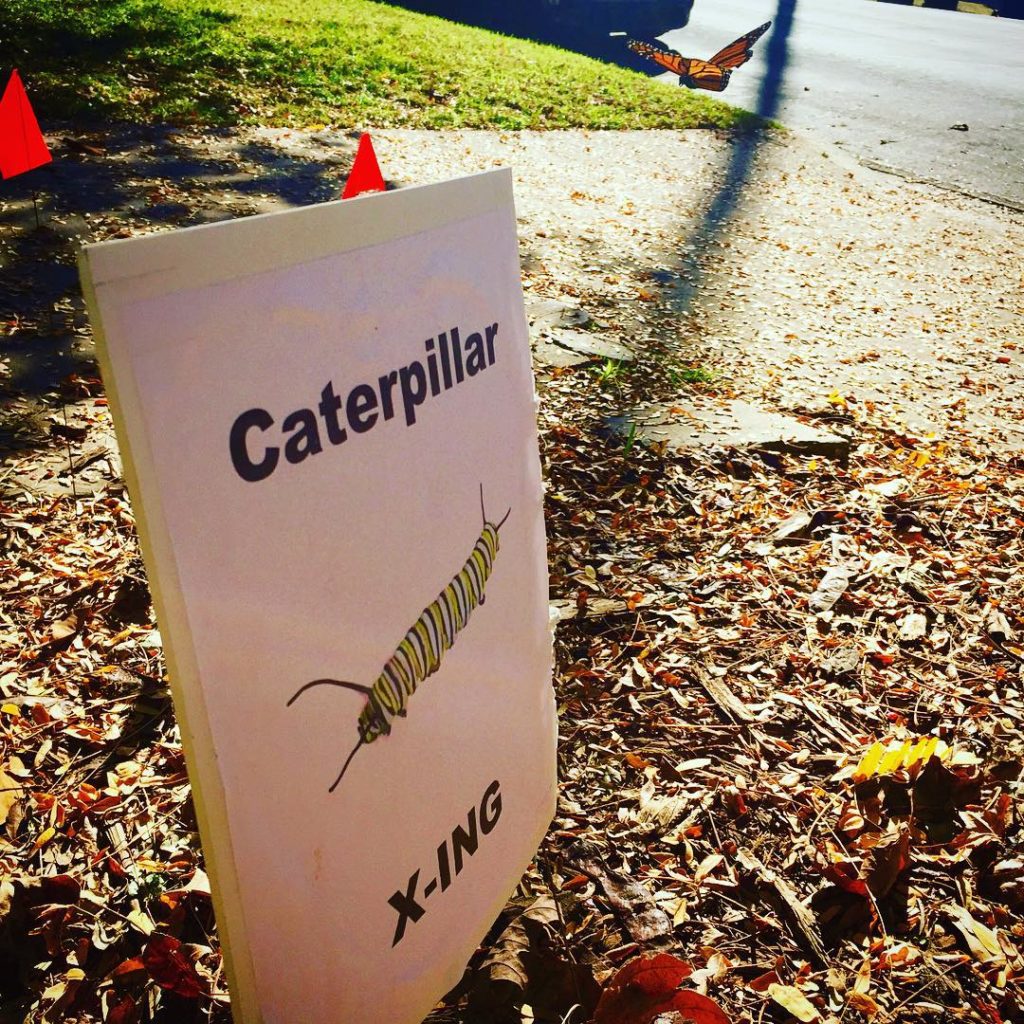 Mind the monarchs! Spotted on our lunchtime #naturewalk, plantings of milkweed that have nourished a fourth generation of #monarchbutterflies. Now this gen is migrating south. Can you spot the guy fluttering by? 🎀✨✨👀