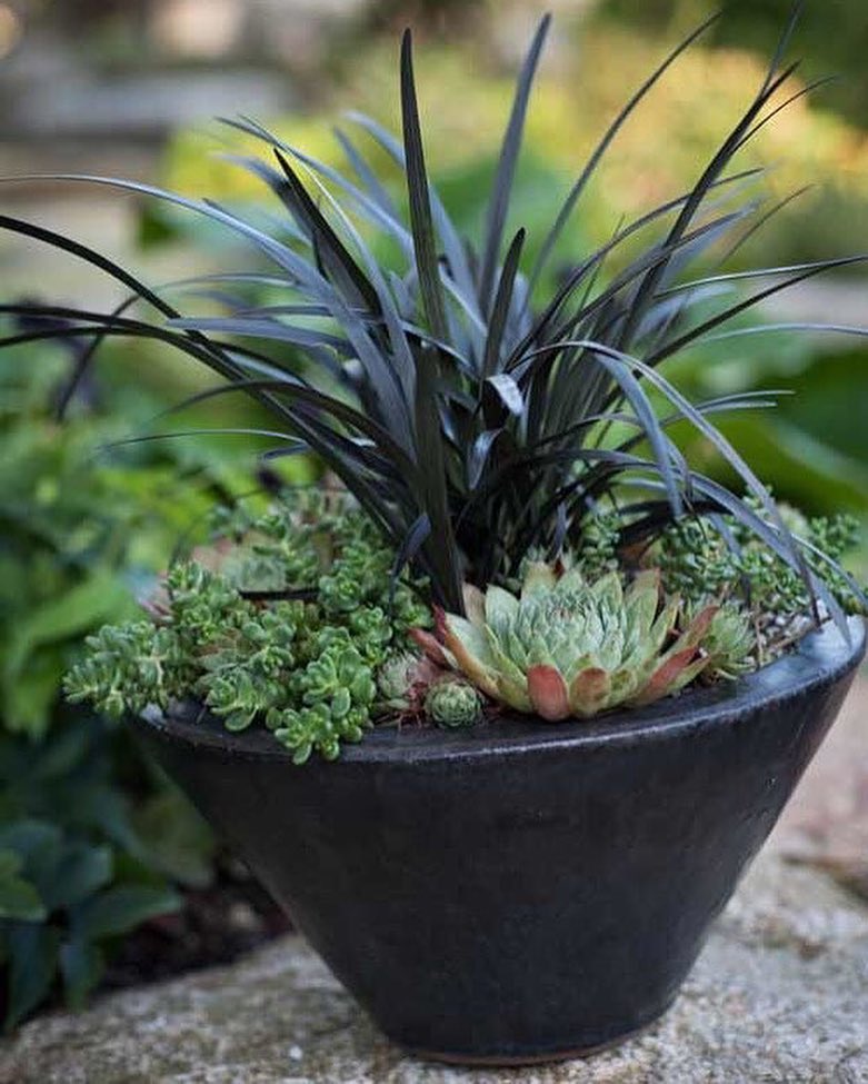 Love this fall planter with hardy succulents and black mondo grass from @avant_gardens_ma Great account to follow! .