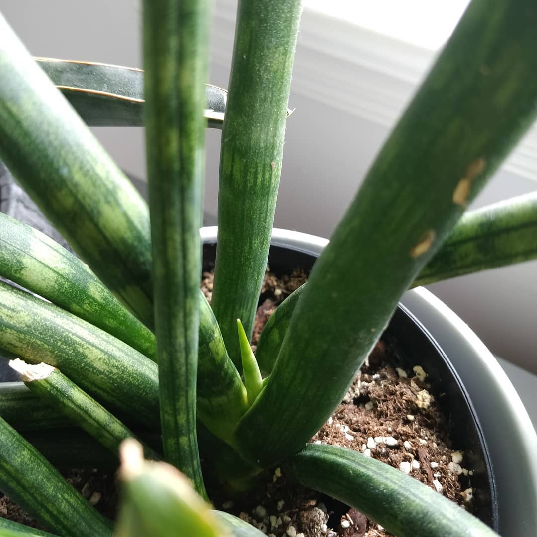 #sansevieriasunday – my wildest snake plant is definitely the cylindrica (middle). I chose it specifically because of how it was grown in its natural rosette formation. 📷 2) happy to see new growth. 📷 (the rest) not caring about blemishes on leaf tips. Nature is about survival, not aesthetics. So long as I know these plants are growing healthily, I don’t worry about imperfections.