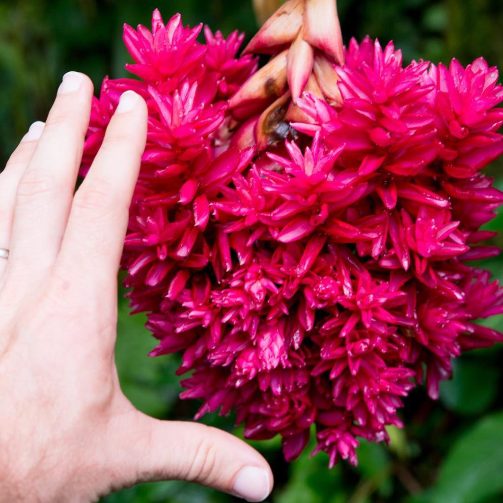 Ginger blooms the size of volleyballs! 🏐From today’s photo tour of Hawaii Tropical Botanical Garden up now on the blog. This is Alpina purpurata c.v. ‘Tahitian Ginger’ #tahitianginger #alpinapurpurata #hawaiiantropicalbotanicalgarden #bigislandlove #bigisland #gardentour #thehorticult