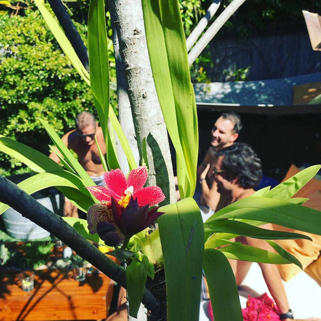 Our Burrageara orchid now blooming for the first time since we mounted it to the loquat tree. 😘 Another hot October day in La Jolla. ☀️😅#burrageara #orchid #sundayfunday #thehorticultgarden