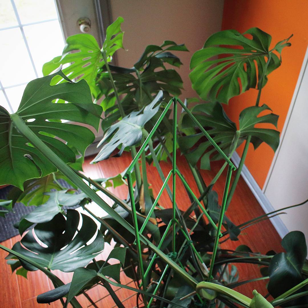 This is the trellis that holds up the vines of my monstera, usually used for vegetables. The triangular shape allows it to be sturdy as the central point of attachment as opposed to leaning against a wall. You can also see the light coming through this unobstructed West facing door – keeps monstera happy! #monstera #monsteradeliciosa #houseplantjournal #plants #gardening #leaf #botanical #greenthumb #greenery #foliage #plantlife #botany #urbanjungle #greenfingers #houseplants #indoorplants #plantlove #plantstagram #indoorgarden #instaplants #plantsarefriends #plantlover #urbanjunglebloggers #indoorgardening