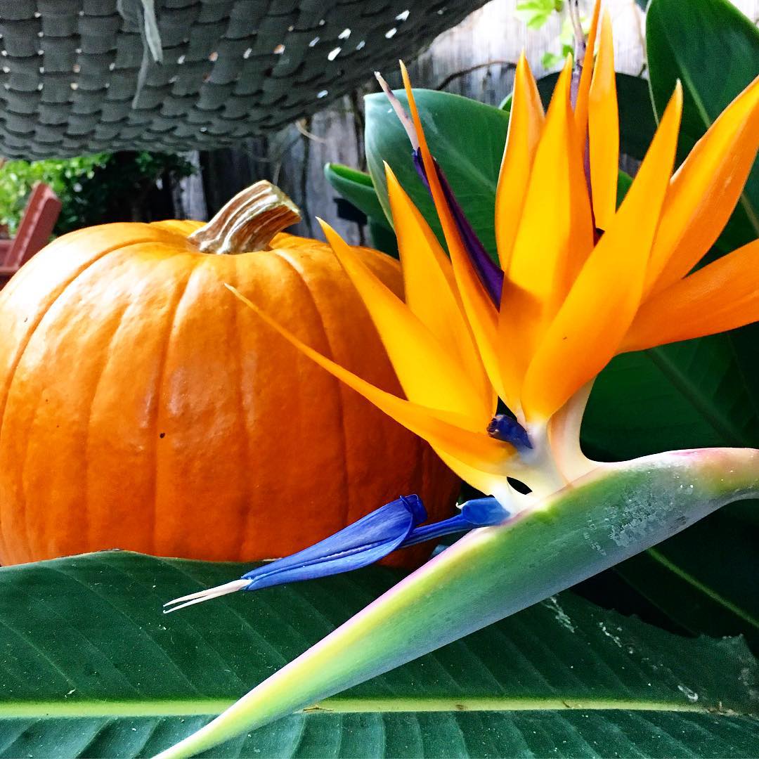 Orange you glad it’s the first day of October? (Said the bird of paradise to the pumpkin.) 🌻🎤🎃 #birdofparadise #strelitziareginae #cucurbitapepo #happyoctober #thehorticult