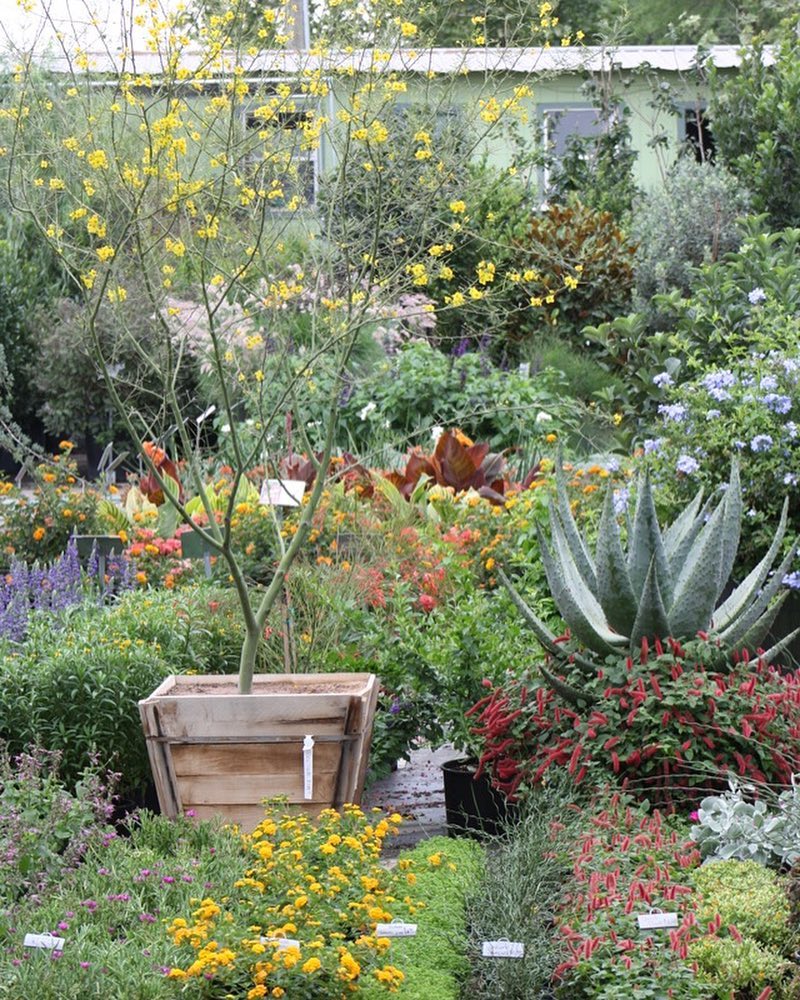 The view from the office of @viverogrowers. A lot to see like Desert Museum, Lantana, Salvia, and Aloe marlothii. (You can also see/pick up the Summer 2017 issue there!) .