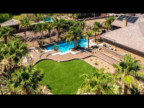 Homes for sale Henderson. An elevated hillside home on 1 acre lot in an enclave of million-dollar homes near College Drive in Henderson resides on a private street with beautiful sunrises, sunsets, & Mountain Views from every room. This 4 bedroom one story home has 3,665 st ft of indoor living and 440 sq ft of indoor-outdoor sunroom featuring built-in BBQ, wine & beverage fridges, & TV. The Primary suite boasts 1,082 of living space with a large walk-in rain shower, jetted tub with a view, wet bar, custom closet & sitting area. Three-car garage with epoxy flooring, crown molding & cabinetry feels like an extension of the house. Recently updated throughout with plumbing, flooring, paint and luxury closet systems. An entertainment backyard resort oasis has 68 palms, 3,200 sq ft of pavers, stone walls, & a 45′ x 18′ pool with five waterfalls & spa, stone fireplace, newly sealed deck, and putting green with dramatic custom lighting. Nearby BLM land trails and off-roading. Easy Highway access, just 20 mins to Strip.