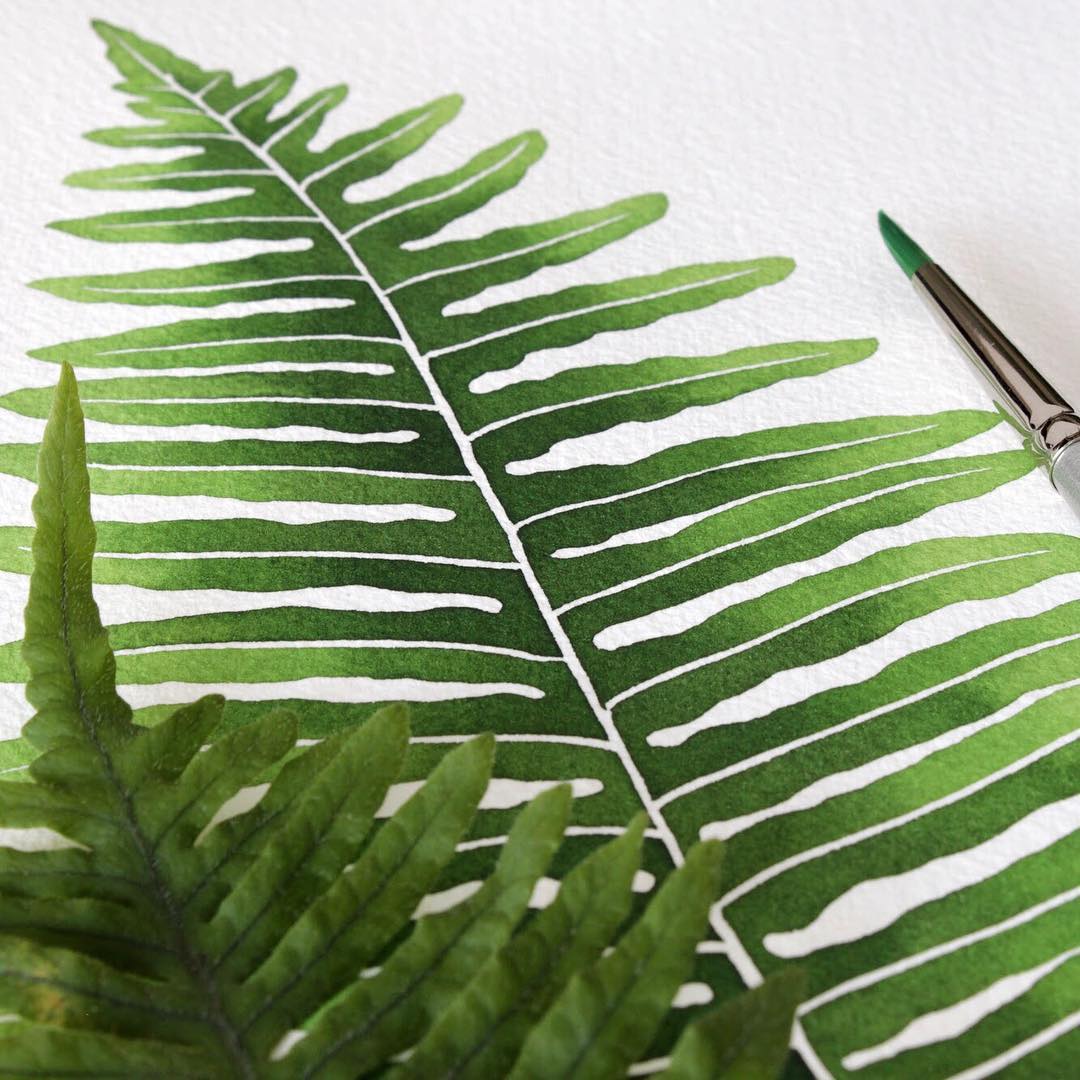 Just finished up this E.T. Fern also called the Caterpillar Fern, one of my favorite Polypodiums. Mine is thriving here in the studio, I’ll take pictures tomorrow alongside the painting. Working on several new fern prints here, thanks again to @centralfloridaferns for all of the live inspo!!
