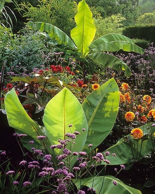 How amazing is this?! A cluster of Ensete ventricosum and Musa Basjoo lend height to a border of other tender perennials including Verbena bonariensis and ‘David Howard’ dahlias. Banana plants aren’t just for the topics. Enjoy our article on these tropical beauties in the current Summer 2017 issue. Photo by Jonathan Buckley. .
