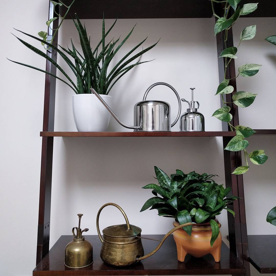 Trying a fun composition here: sansevieria has always been and always will be a favourite house plant. Note: even though there are misters in the picture, I’ve never seen the need to mist snake plants #sansevieria #snakeplant #wateringcan #brassmister #vintage #vintagestyle #plantlove #plantlife #plantsofinstagram #plantstagram #botanical #botany #greenery #greenthumb #instaplants #foliage #leaflove #leaf #urbanjunglebloggers #jungalowstyle #plants #plantshelfie #plantparenthood
